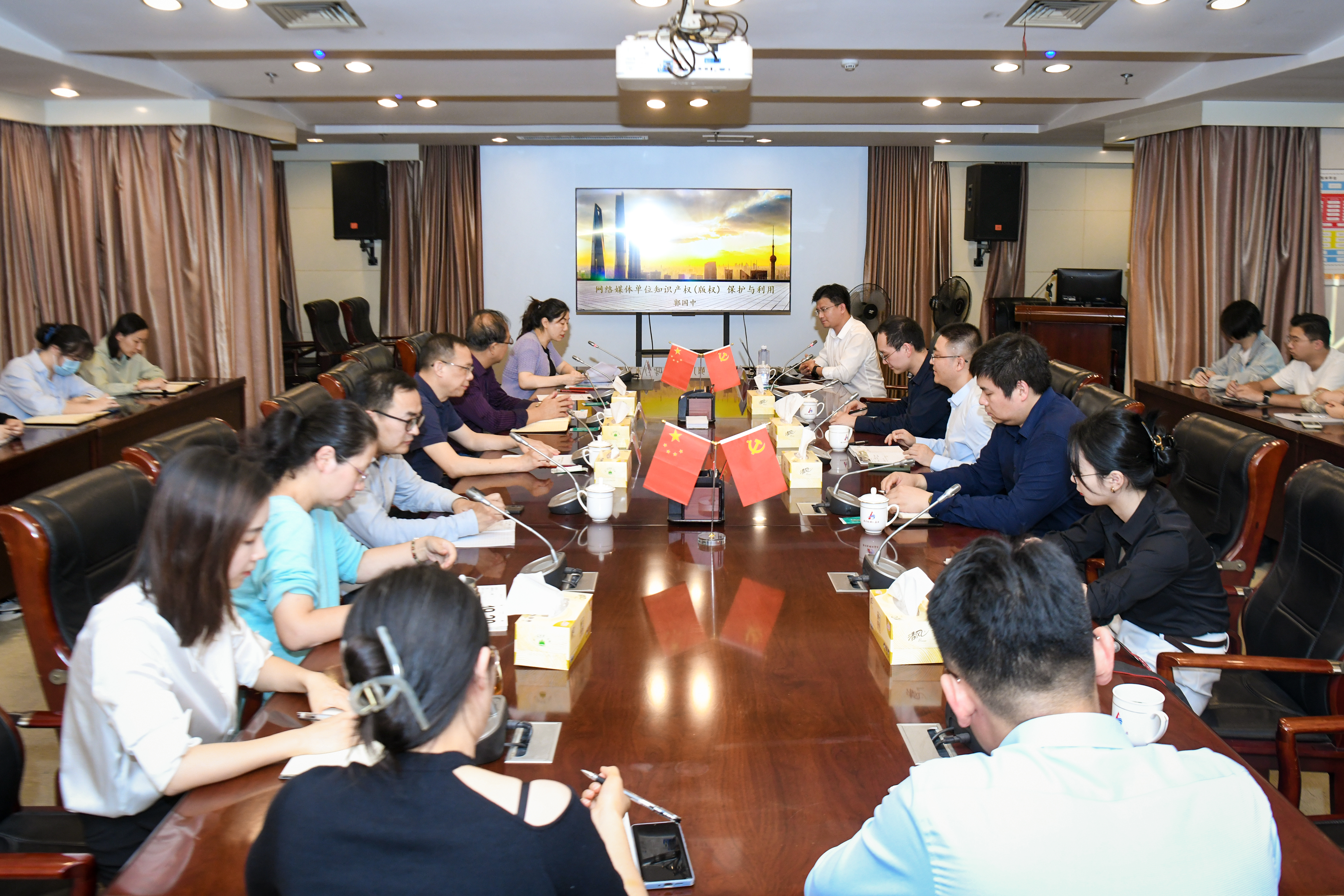隨后,郭國(guó)中主任以“網(wǎng)絡(luò)媒體單位知識(shí)產(chǎn)權(quán)(版權(quán))保護(hù)與利用”為題,結(jié)合典型案例,就著作權(quán)的定義、權(quán)利、保護(hù)范圍等相關(guān)知識(shí)作詳細(xì)介紹。通過結(jié)合新聞媒體當(dāng)前在知識(shí)產(chǎn)權(quán)工作中的常見需求,郭國(guó)中主任分享了版權(quán)糾紛解決途徑,幫助參會(huì)人員充分了解版權(quán)、保護(hù)版權(quán)、管理版權(quán),為集團(tuán)后續(xù)做好知識(shí)產(chǎn)權(quán)保護(hù)和風(fēng)險(xiǎn)防范工作提供指導(dǎo)。